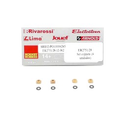 En stock Precio 5,87 € En stock Precio regular 6,90 €Recambio original Electrotren. Set de cojinetes y arandelas de ajuste de eje sinfín, para locomotora eléctrica RENFE 281. -Contenido: 4 cojinetes y 4 arandelas