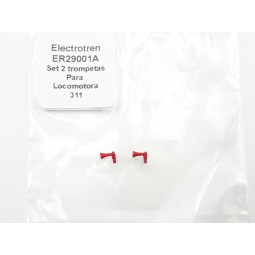 En stock Precio 3,50 €Recambio original Electrotren. Set de trompetas para locomotora diésel 311. -Contenido: 2 Trompetas, color rojo. -Nota: Valido para locomotora diésel 311 de Electrotren, versión rojo/gris.