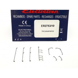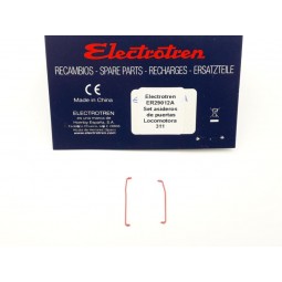 En stock Precio 4,25 €Recambio original Electrotren. Set de pasamanos, para locomotora eléctrica 281 Renfe. -Contenido: Set de 8 pasamanos. -Nota: Válido para todas las versiones de la 281 Renfe de Electrotren.