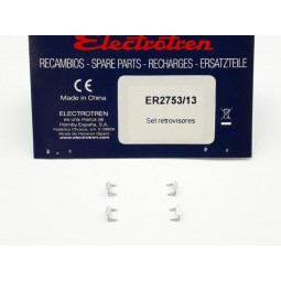 En stock Precio 12,90 €Recambio original Electrotren. Set de espejos retrovisores, para locomotora eléctrica 281 Renfe. -Contenido: 4 Espejos retrovisores. -Nota: Valido para todas las versiones de la 281 Renfe de Electrotren.
