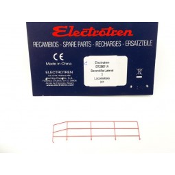 En stock Precio 1,15 €Recambio original Electrotren: Barandilla lateral 1 para locomotora diésel 311. -Contenido: 1 Barandilla lateral, metálica, color rojo. -Nota: Valido para locomotoras diésel Electrotren, versión rojo/gris.