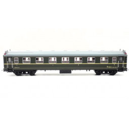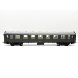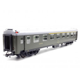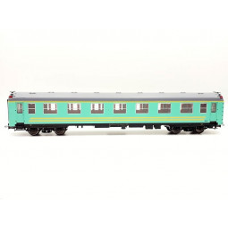 Sin stock Precio 72,00 €Modelo: Coche mixto 1ª/2ª clase serie 5000 RENFE, decoración verde fileteado amarillo. -Con luz interior.