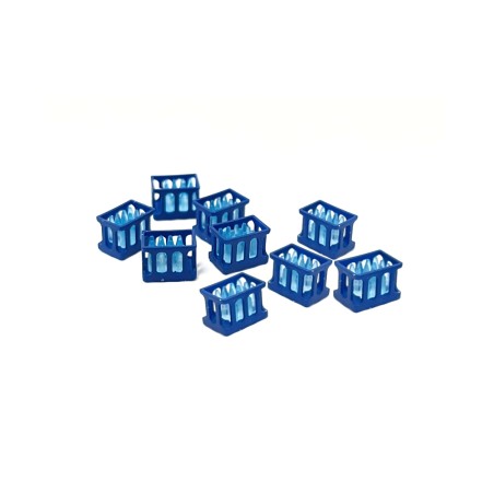- 9 cajas de agua azules con botellas azul claro, hechas en impresión 3D. Modelo pintado.
