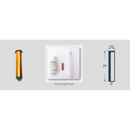 Dimensiones: 24 mm de largo x 5 mm de diámetro.