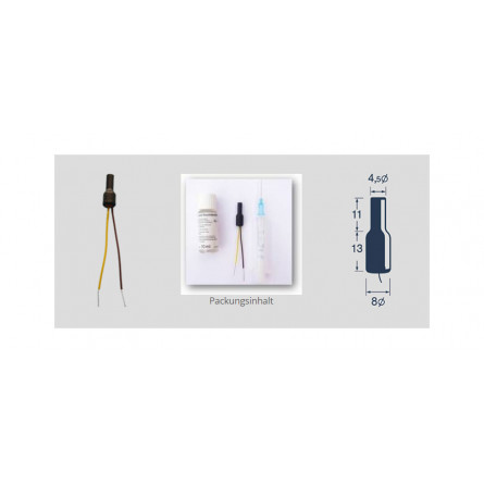 Dimensiones: 24 mm de largo x 4,5 mm de diámetro en salida, 8 mm de diámetro parte inferior.