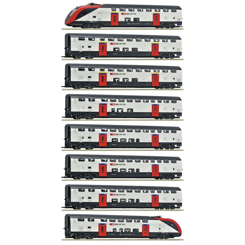 Set de 8 piezas: Tren de dos pisos de larga distancia RABe 502, de la SBB - ROCO - 7700007 - Escala H0.