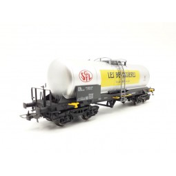 En stock Precio 31,26 € En stock Precio regular 32,90 €Modelo: Vagón cisterna tipo Zas de la SNCF "LES BECASSIERES", decoración plateado chasis negro. -Matrícula: 33 87 796 0 176-8 -Cinemática con cajetín normalizado NEM 362 para enganches.