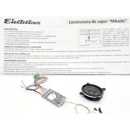 En stock Precio 9,95 €Decoder de Sonido original Electrotren. Decodificador con sonido, para locomotora de vapor MIKADO (Versión Fuel), Loksound V.5 de 8 Pin. Nota: Electrotren, para la digitalización de sus locomotora, utiliza exclusivamente decodificadores de la Marca ESU.