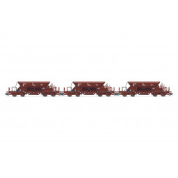 En stock Precio 66,36 € En stock Precio regular 79,00 €Modelo: Set de 3 vagones Fac[6841] con autodescarga, con caja superior baja, segunda subserie, decoración marrón, de la DR.