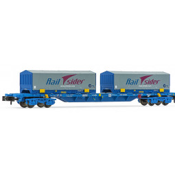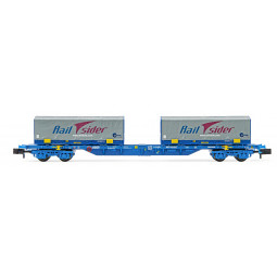 En stock Precio 61,43 € En stock Precio regular 81,90 €YA DISPONIBLE. Modelo: Vagón portacontenedores de 4 ejes MMC RENFE, decoración azul, cargado con 2 contenedores de bobinas "Cadefer/Railsider".