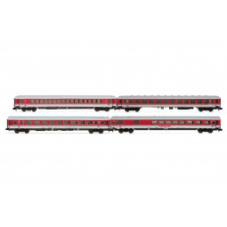 Sin stock Precio 129,66 € Sin stock Precio regular 149,90 €Ya disponible Modelo: Set de 4 coches "InterCity" de la DB AG, decoración roja/blanca. -Composición compuesta por 1 coche Apmz, 1 coche Bm, 1 coche Bpmz y 1 coche Armz.