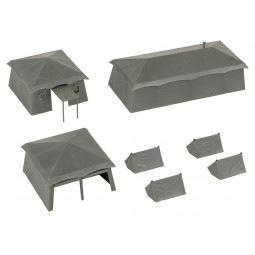 Modelo: Depósito para 2 locomotoras. El modelo se puede ampliar con cobertizos de locomotoras adicionales. Las puertas (altura libre 40 mm) son abiertas y cerradas por la locomotora a través de un mecanismo de tope. Para locomotoras con una longitud de hasta 180 mm. Vía compartimentos 15°. Es...