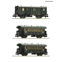 Sin stock Precio 30,00 €Modelo: Set de dos coches de pasajeros y un furgón de equipajes de los Reales ferrocarriles estatales bávaros.■ Modelo con líneas decorativas e inscripciones auténticas