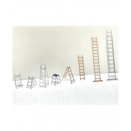 En stock Precio 17,00 €Modelo: Juego de escaleras portátiles. Nota: Hechas en latón fotograbado. Pintadas en tres colores: marrón, negro y plateado. Se requiere montaje
