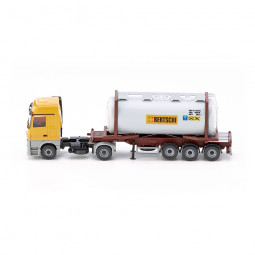 En stock Precio 13,52 € En stock Precio regular 15,90 €Modelo: Cabeza tractora Mercedes-Benz Actros, con semirremolque portacontenedores, con contenedor cisterna de 30 pies "BERTSCHI". -Color: Amarillo/ Gris. -Periodo: 2012 - 2015