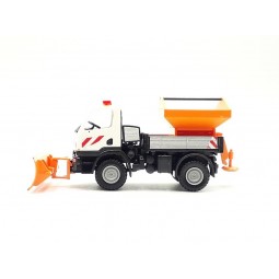 En stock Precio 9,50 €Modelo: Camión M.B. Unimog U-20, mantenimiento y conservación de carreteras, para esparcido de sal en carreteras con nieve o heladas.