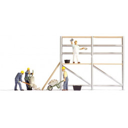 Modelo: Set de personajes albañiles con accesorios y andamio. -Características: Las figuras son de un acabado excelente, ya que son pintadas a mano.