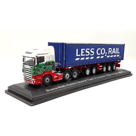 Camión Scania R440 con semirremolque extensible con contenedor "LESS CO2 RAIL" - ATLAS-OXFORD - 4649122 - Escala 1/76.