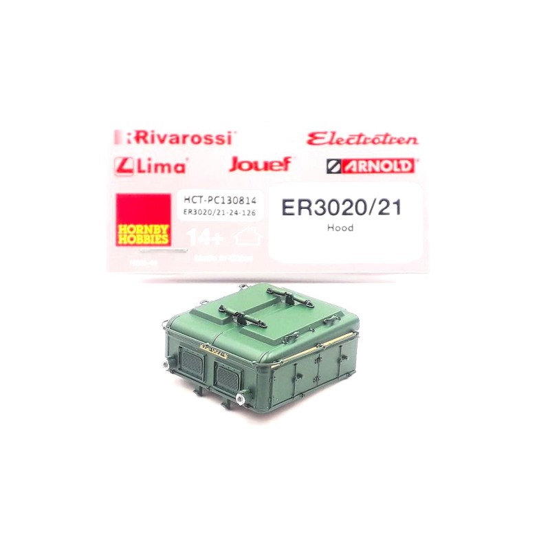 Capó delantero completo para locomotora eléctrica 7200 Renfe, decoración verde/amarillo - ER3020/21 - Escala H0.