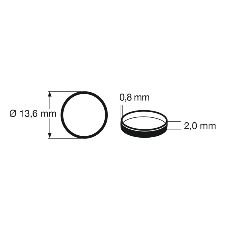 Aro de adherencia diámetro 13,6 mm x 2 mm, espesor 0,8 mm.