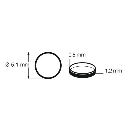 Aro de adherencia diámetro 5,1 mm x 1,2 mm, espesor 0,5 mm.