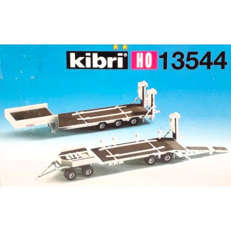 Set de 2 semirremolques plataforma para transporte de maquinaria - KIBRI - 13544 - Escala H0.