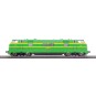 Locomotora diésel serie 4000 RENFE, decoración verde franjas amarillas.