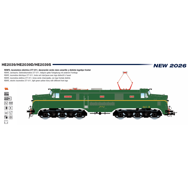 Digital - Locomotora eléctrica 277 RENFE, verde claro-amarillo y distinto logotipo frontal - ELECTROTREN - HE2039D - Escala H0.