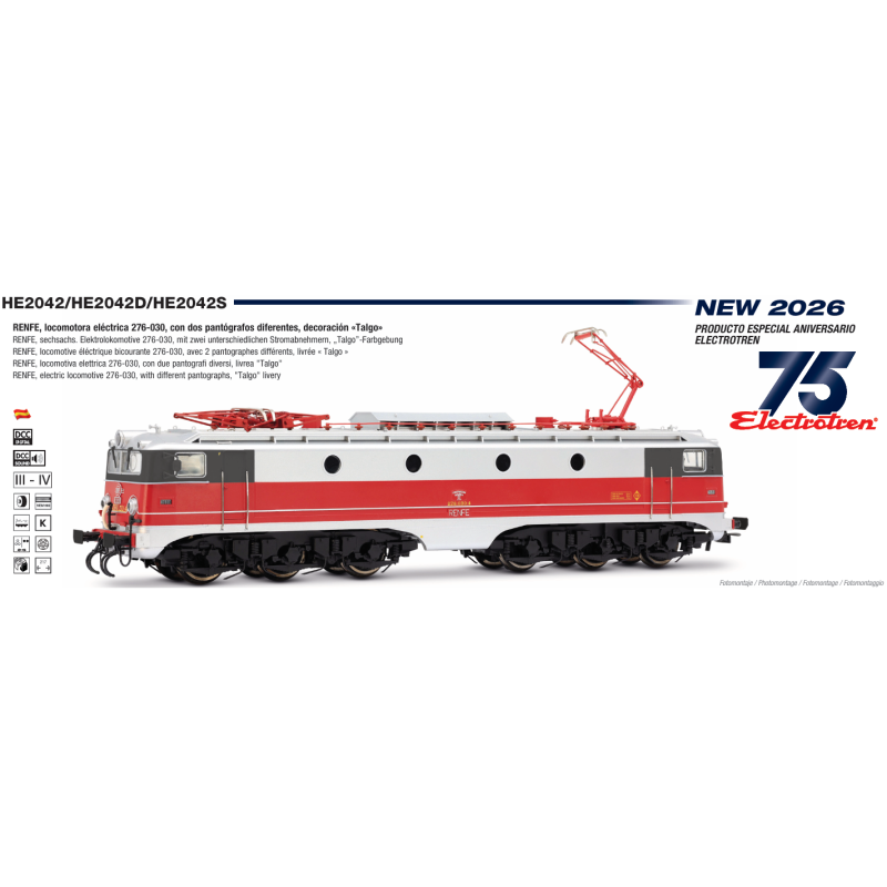 Digital - Locomotora eléctrica 276 RENFE, pantógrafos diferentes, decoración "Talgo" - ELECTROTREN - HE2042D - Escala H0.