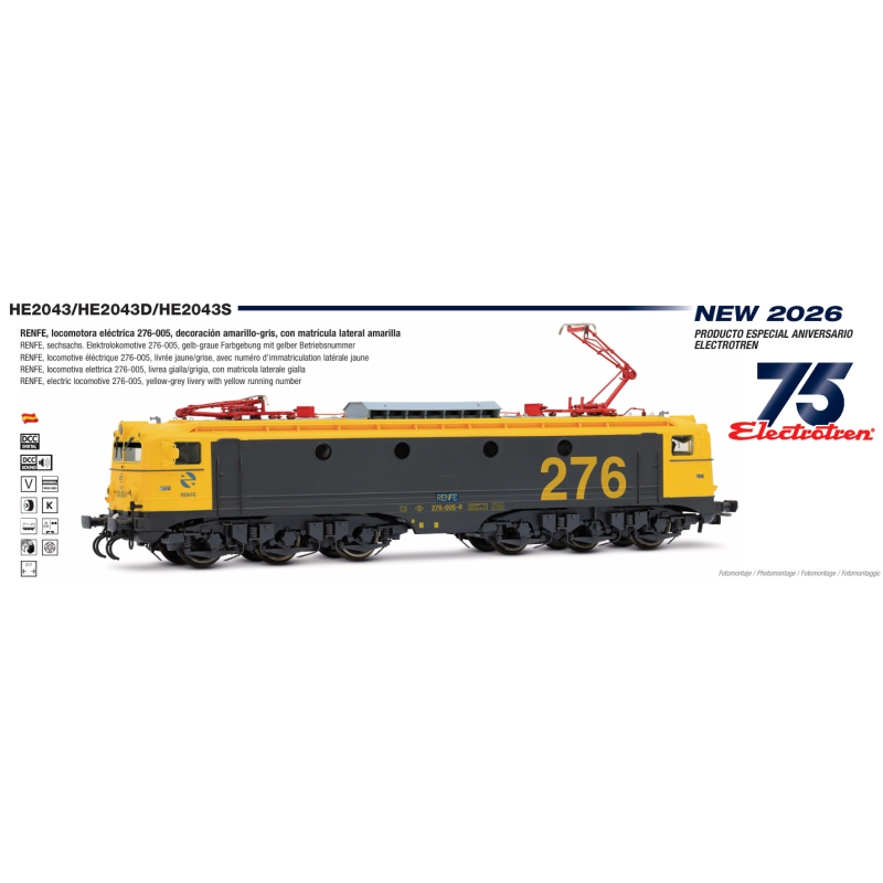 Digital/Sonido - Locomotora eléctrica 276 RENFE, decoración "Taxi" - ELECTROTREN - HE2043S - Escala H0.