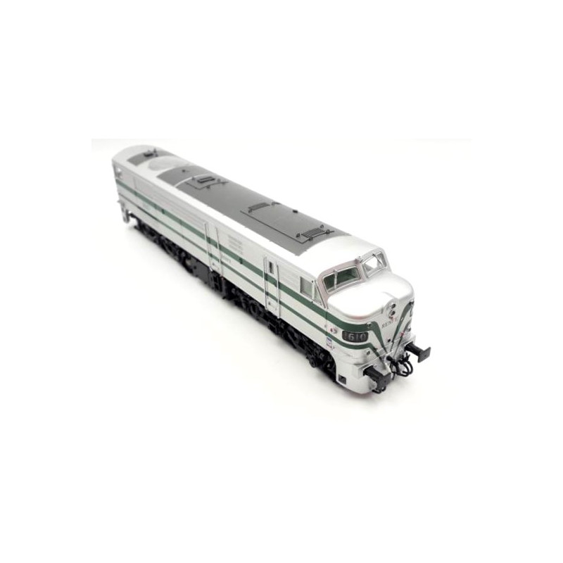 Locomotora diésel 316 Renfe, decoración Plata franja verde.