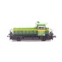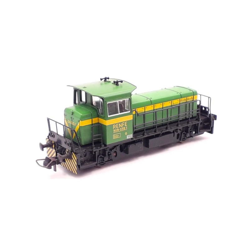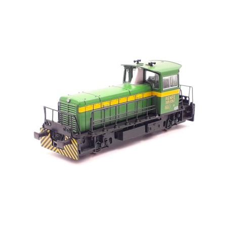 Tractor de maniobras diésel 309-032-1 RENFE, decoración verde franja amarilla.