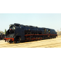 Locomotora de vapor 151F-3101 RENFE «Santa-Fé», versión museo Villanova, con detalles rojos y dorados.