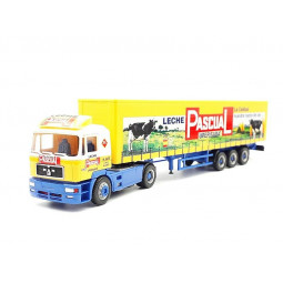 Sin stock Precio 18,90 €Modelo: Camión tractora MAN F 2000, con semirremolque, decoración empresa Española de lácteos "Leche Pascual".