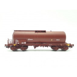Modelo: Vagón cisterna tipo Zas RENFE, decoración rojo oxido, para el transporte productos inflamables. -Matrícula: 36 71 729 6 029-2 -Cinemática con cajetín normalizado NEM 362 para enganches.