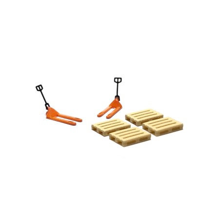 - Contiene 2 transpaletas amarillas y 4 palés