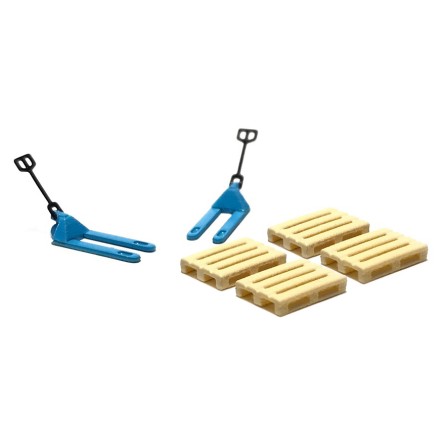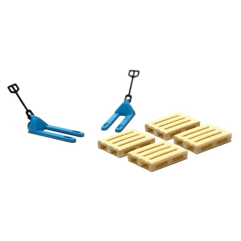 - Contiene 2 transpaletas amarillas y 4 palés