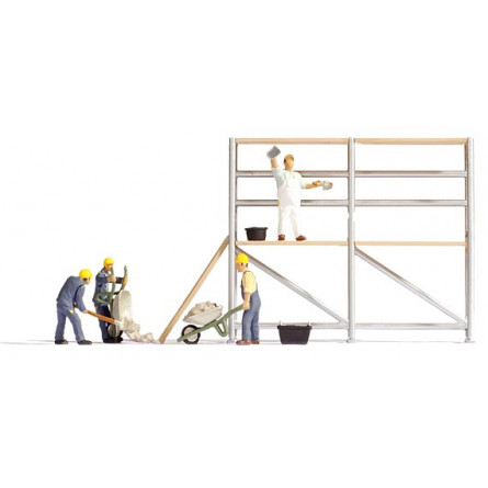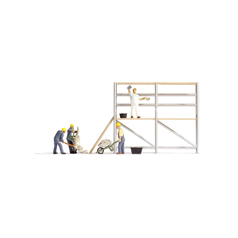 Set de personajes albañiles con accesorios y andamio - NOCH - 15054 - Escala H0.