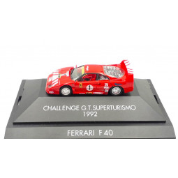 En stock Precio 15,21 € En stock Precio regular 16,90 €Modelo: Ferrari F40 Challenge G.T. Super Turismo. -Periodo: Año 1992 -Presentación: En vitrina urna, capo delantero y trasero funcional. -Edición exclusiva.
