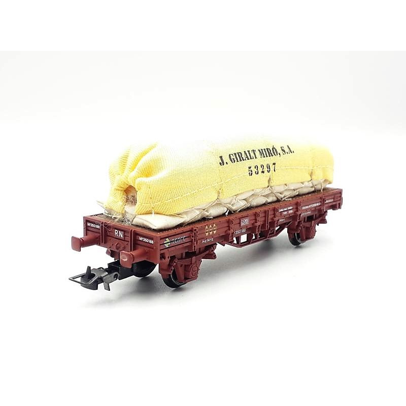 Vagón plataforma 2 ejes RENFE, con sacos "J. Giralt Miro, S.A." - ELECTROTREN - 1022 - ESCALA H0.