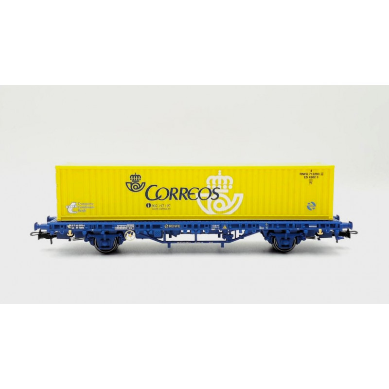 Vagón plataforma MC1 Renfe, con contenedor Correos - ELECTROTREN - 1568 K - Escala H0.