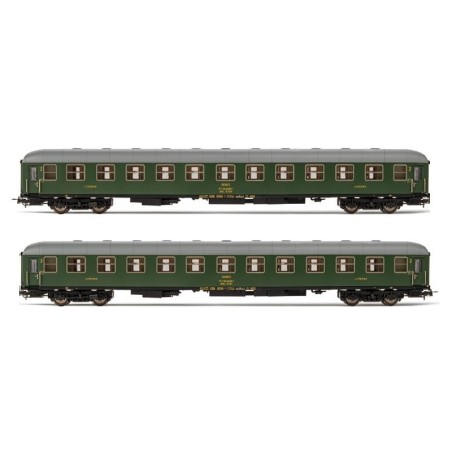 Set de 2 coches literas BBL-8100 RENFE, decoración verde - ELECTROTREN - HE4036 - Escala H0.