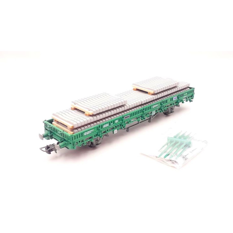 Vagón teleros Ks Cargas Renfe, con carga de traviesas de hormigón - ELECTROTREN - 1438 K - Escala H0.