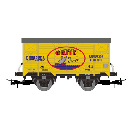 Vagón J de dos ejes RENFE, decoración «Conservas Ortiz» - ELECTROTREN - HE6092 - Escala H0.