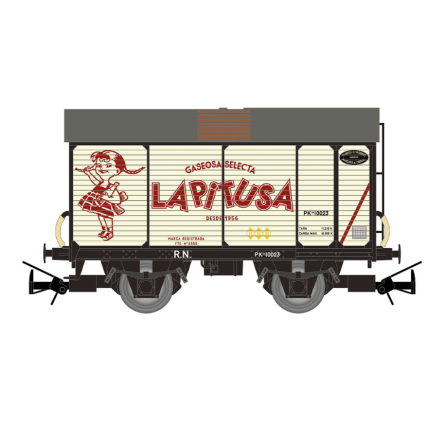Vagón J de dos ejes RENFE, decoración «Gaseosa La Pitusa» - ELECTROTREN - HE6104 - Escala H0.