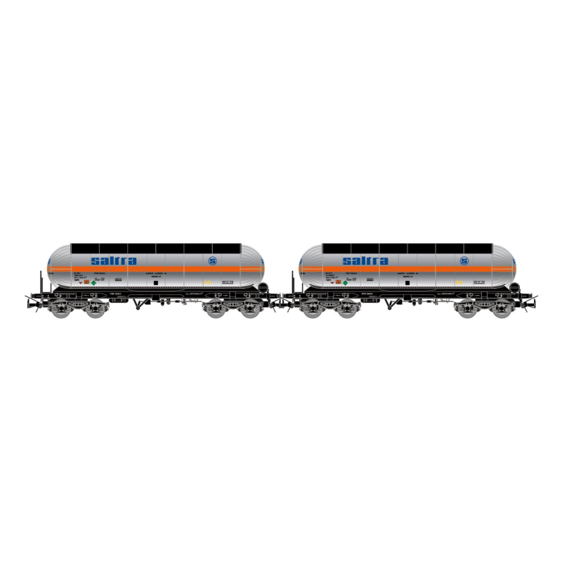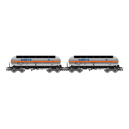 Set de 2 vagones cisterna de 4 ejes RENFE para dióxido de carbono, «Saltra», decoración plata.