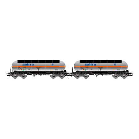 Set de 2 vagones cisterna de 4 ejes RENFE para dióxido de carbono, «Saltra» - ELECTROTREN - HE6098 - Escala H0.