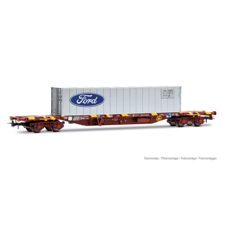 Vagón portacontenedores MMC3 RENFE, con 2...
