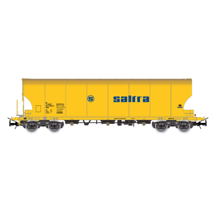 Vagón tolva cerealera de 4 ejes RENFE , «Saltra», decoración amarilla con logo azul.