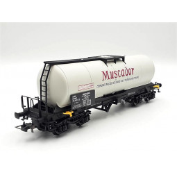 Vagón cisterna tipo Uahs RENFE "SAVESA", decoración gris chasis negro, para el transporte de vinos.
